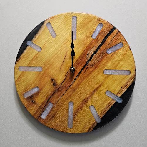 Each clock is sure to be a focal point. Every clock is one of a kind, unique in the wood configuration, species and epoxy resin color and design