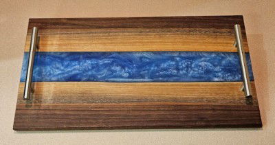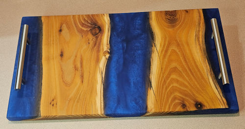 This beautiful Charcuterie Board features Osage wood with deep blue epoxy. The orientation of the wood adds to its uniqueness.