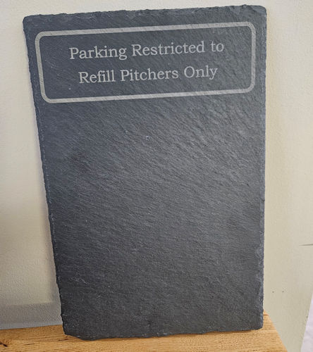 This slate refill pad has rough edges just like the coasters, along with 4 rubber feet. It measures 8"wide x 12" long and is the perfect place to park the refill container.